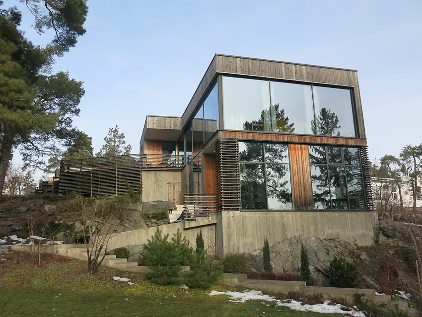 This house was also on the list when scouting in the Stockholm area for designed houses for the popular tv serie. It has a impressiv front in glass, and during summer, it is warm with the sun shining in. The sun... as all scandinavians dream and long for. (If you see a person in march-april standing seemingly passive aiming his face towards the sun, he is most likely a swede, consuming light and energy.)